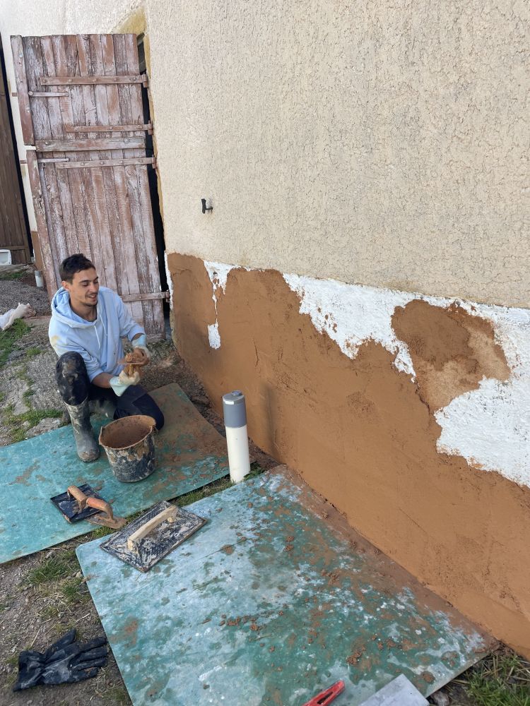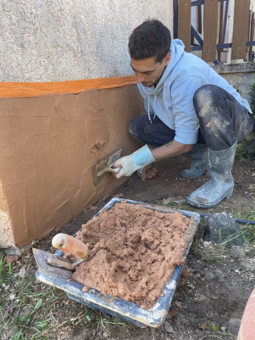 - soubassement de la maison avec de la chaux et la terre du jardin (apprendre à créer une recette soit même)