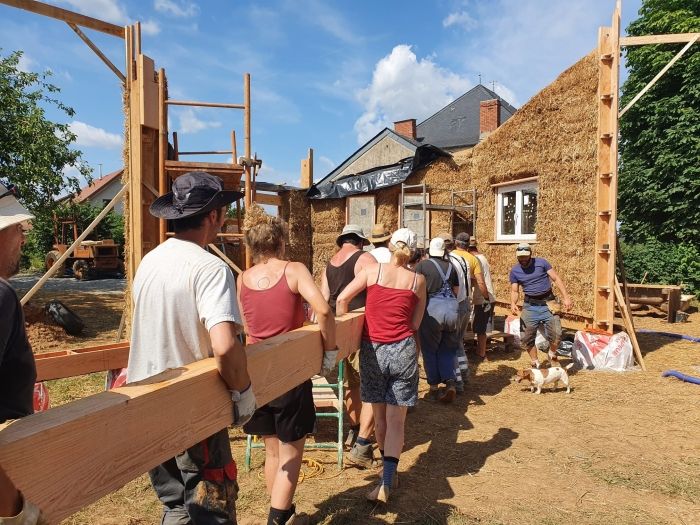 Nous souhaitons construire une maison en paille porteuse « technique Cellule Sous Tension » 80M2 pour nous 4, pas de dalle béton, pas de chaux mais du bois, de la paille, de la terre et un peu de fromage blanc .