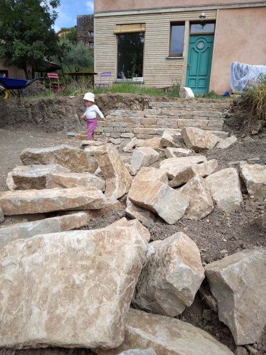 Remontage de murets en pierre sèches et/ou maçonnées sur le terrain collectif.