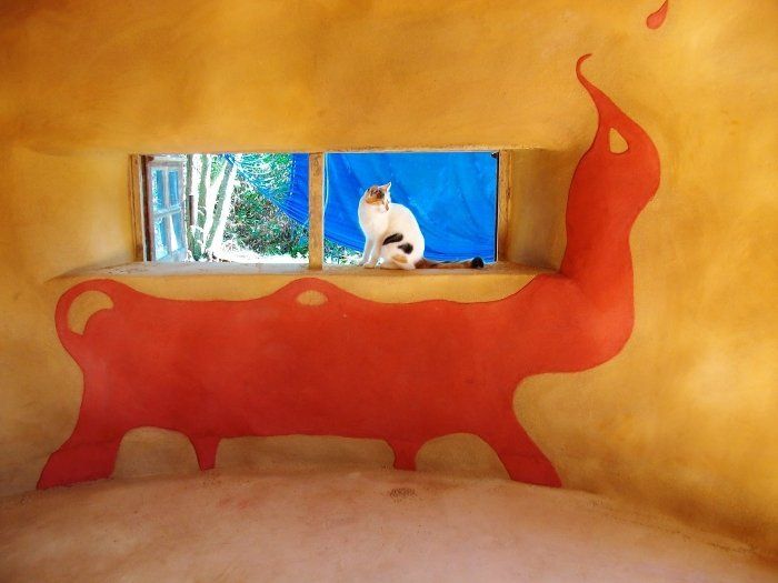 Nous réaliserons les enduits de finitions en terre sable à l'intérieur d'une cabane de 20m2. C'est aussi l'occasion de faire des sculptures murales et de goûter au côté plastique de la terre et de laisser parler votre créativité. Nous réaliserons aussi une peinture naturelle au plafond, et si le temps le permet l'enduit de finition de la dalle. Nous utiliserons des techniques simples accompagnées de gestes en conscience, sans machines.