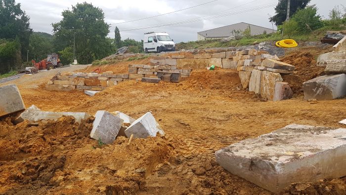 Le terrassement de la futur maison paille est finit. Nous devons à présent poser les Fondations en bloc de marbre de récup!