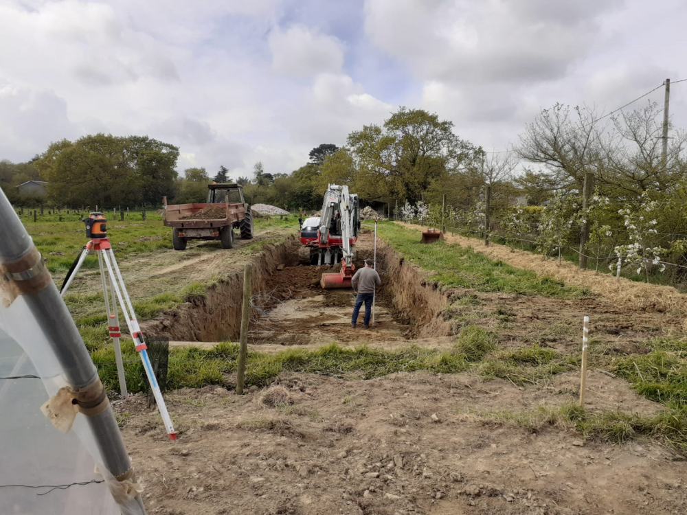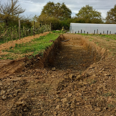 Nous avons récupéré le bâti d’une serre en métal et verre (de 1950) semi-enterrée, pour laquelle nous devons lui faire des murets de soubassement (1m70 de haut). Nous souhaitons les réaliser en pierre maçonnées à l’argile (du terrain, mélangé avec du sable). C’est un sacré chantier ! La serre fait 21m de long et 3m de large, c’est pourquoi on s’est dit que ce serait une belle occasion pour avoir de l’aide, de l'entrain, de la convivialité et transmettre ce savoir. Nous demandons que vous puissiez être là pour minimum 1 semaine. (semaine de 4 jours du lundi au jeudi)