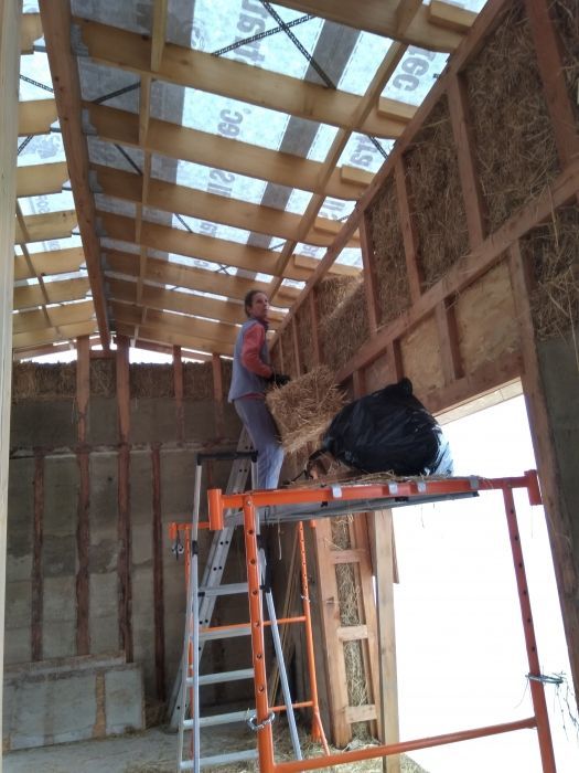 L'ossature bois est terminée et nous en sommes au remplissage des murs qui doivent être finis avant l'hiver.