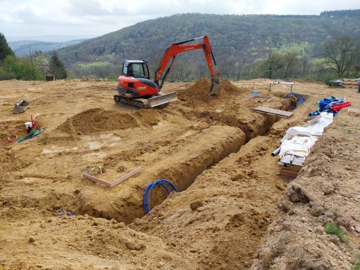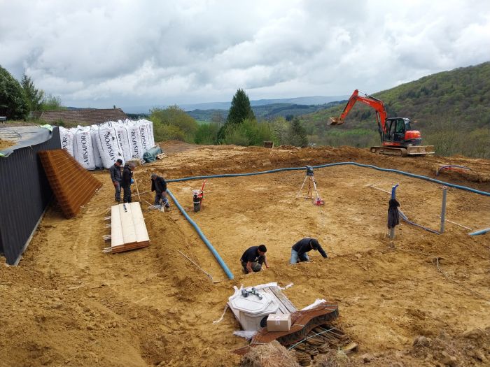 Du 7 au 23 avril 2025, je vous propose de participer passage des réseaux et puit canadiens puis fondations misapor et coulage du radier le 23