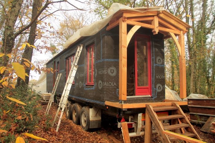 Le chantier est en auto construction de A à Z, nous avons conçu le projet avec l’aide d’un papa architecte de très bon conseil et en nous appuyant sur l’expérience acquise lors de la construction d’une tiny house de 5m50 il y a 3 ans avec des amis.