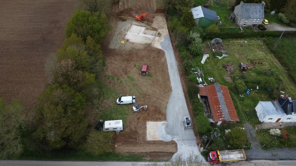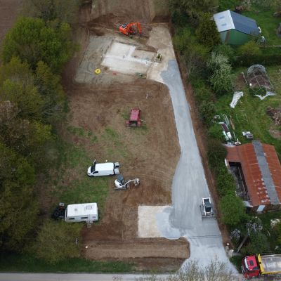 Création d’une maison en double ossature bois et remplissage en ballots de paille (méthode GREB), enduit intérieur en terre/paille + enduit chaux extérieur, à la campagne, sur un hectare anciennement champ agricole. Réalisation d’un assainissement non collectif (phyto ou pédo-épuration), captage d’eau de pluie. A l’avenir: réalisation de deux studios en paille porteuse ou terre (à voir). Création d’une forêt jardin, de mares, et d’une mini-forêt.