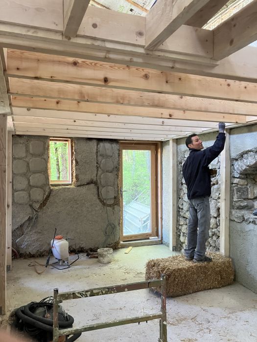 - enduits terre-crue (courant avril - avec une enduiseuse pro - et juin)