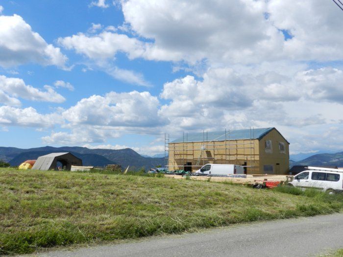 les murs caissons seront remplis en botte de paille au sol avant d'être levés, et les murs en ossature recevront la paille une fois le hors d'eau fini.