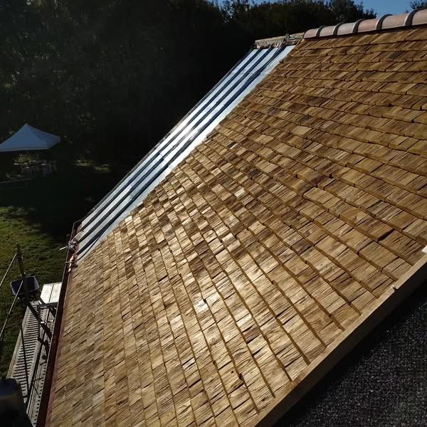 05/2025 : Pose de 6000 bardeaux fendus en châtaignier