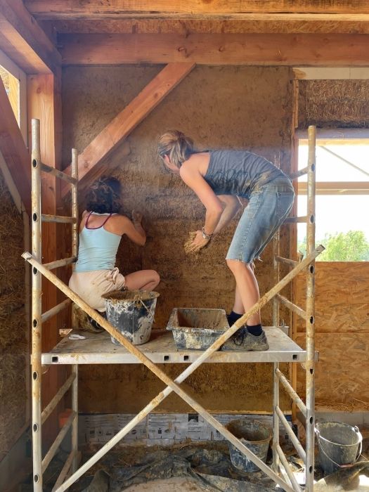 Venez avec nous pour apprendre la pose des bottes de paille, la gestion des soubassements (pour éviter les remontées d'humidité), et découvrir la réalisation et la pose des enduits intérieurs : badigeon, enduits de corps en terre, paille et sable, etc.