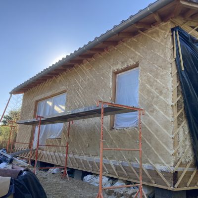 Nous serons accompagnés en début, milieu et fin de chaque chantier par un professionnel pour la pose de bottes de paille et des enduits terre et enduits chaux.