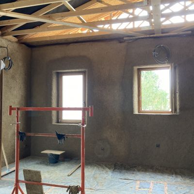 Du 30 juin au 3 août : enduits terre à l’intérieur