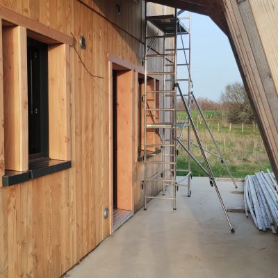 La phase 1 qui consistait à mettre le bâtiment hors d'eau / hors d'air n'attend plus qu'une ultime et longue étape : le bardage.