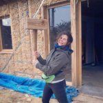Le chantier participatif comportera la mise en œuvre des bottes en tunnel dans la double ossature, les enduits terre intérieurs seront formulés avec la terre issue des fondations. Les enduits extérieurs seront en chaux.
