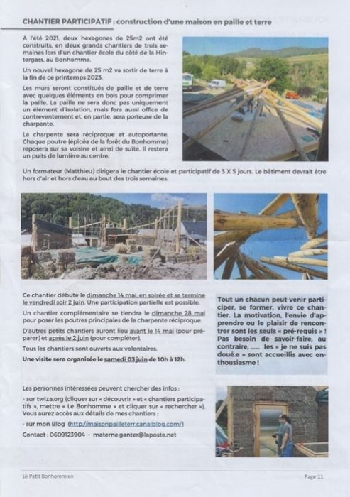 Le chantier de trois semaines est programmé du dimanche soir 14 mai au vendredi soir 02 juin 2023. Il est animé par Matthieu Salles qui a plus de 10 ans d'expérience et de l'enthousiasme à revendre !