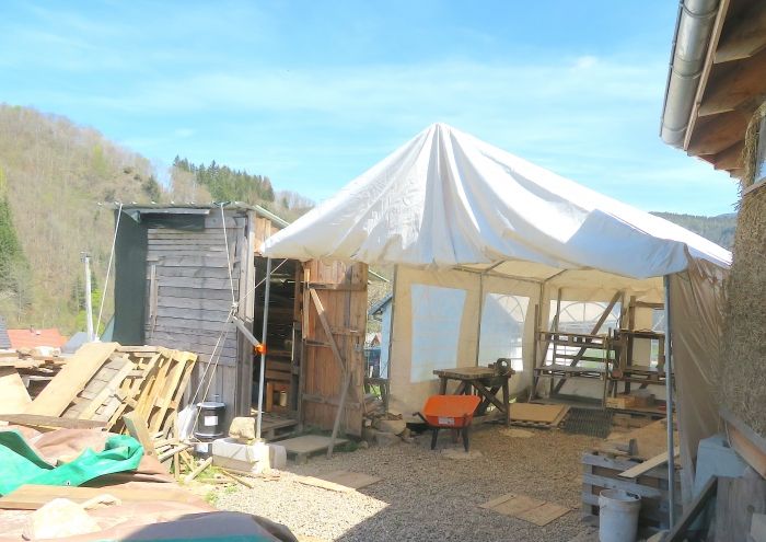 Sur le terrain il y a déjà un double hexagone CST, mais avec une toiture double pente avec des tuiles. Il reste également du boulot sur cette construction-là.