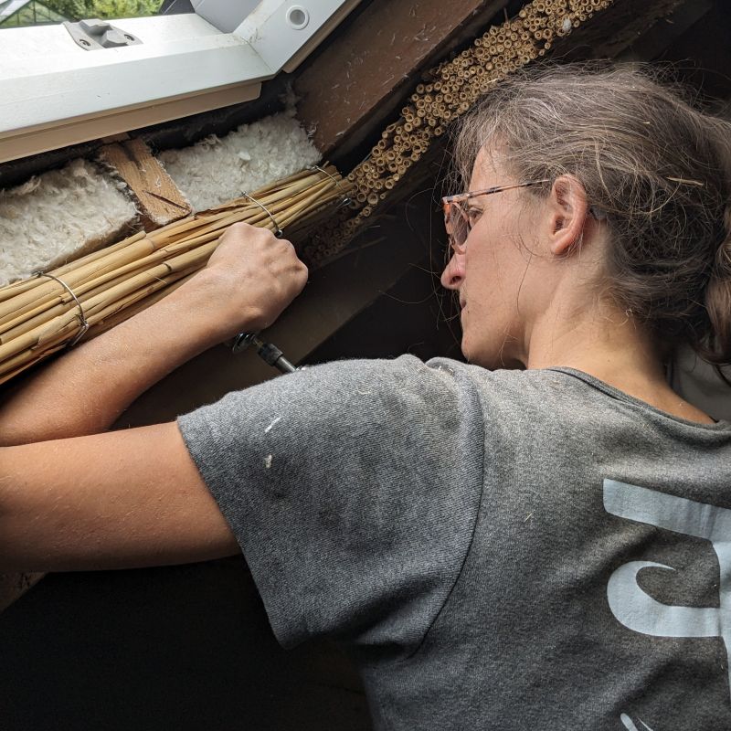 Je travaille essentiellement avec d'autres artisanes pour des travaux clef en main, mais également sur de l'accompagnement à de l'auto-construction.