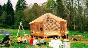Pour cela, nous avons acquis 1,2 ha dans le sud de la Dordogne, et commencé à construire une grande yourte d'habitation RT2012 de 78 m2 avec mezzanine, à laquelle viendra s'ajouter par la suite tout un potager en permaculture, aux arbres fruitiers dont 24 sont déjà plantés. L'installation se poursuivra alors avec tout le système d'assainissement en phytoépuration, les panneaux photovoltaïques, etc...