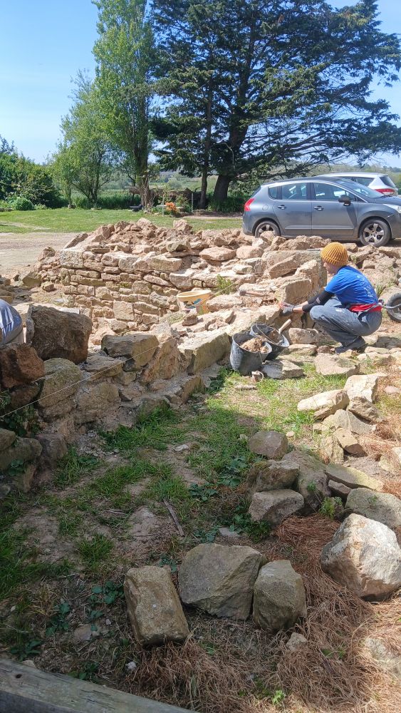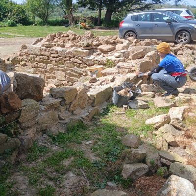 - Refaire les joints à la chaux du mur en pierre