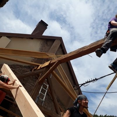 Enfin !!! Après une session de charpente tradi beaucoup plus difficile que prévu, le gros-oeuvre du premier bâtiment est achevé. Ca a été épique,...