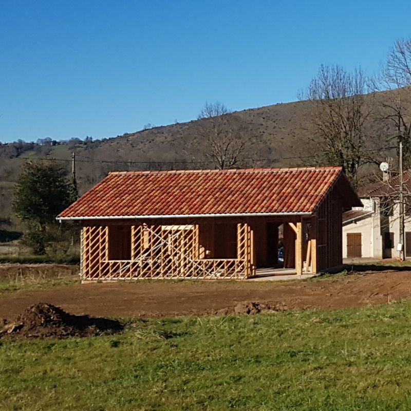 Dans un petit village au cœur de l'Ariège, je construis cette petite maison de 60m2 sur un terrain acheté avec 2 autres familles. Les voisins ont également déjà commencé leur chantier et habitent en bus sur le terrain.