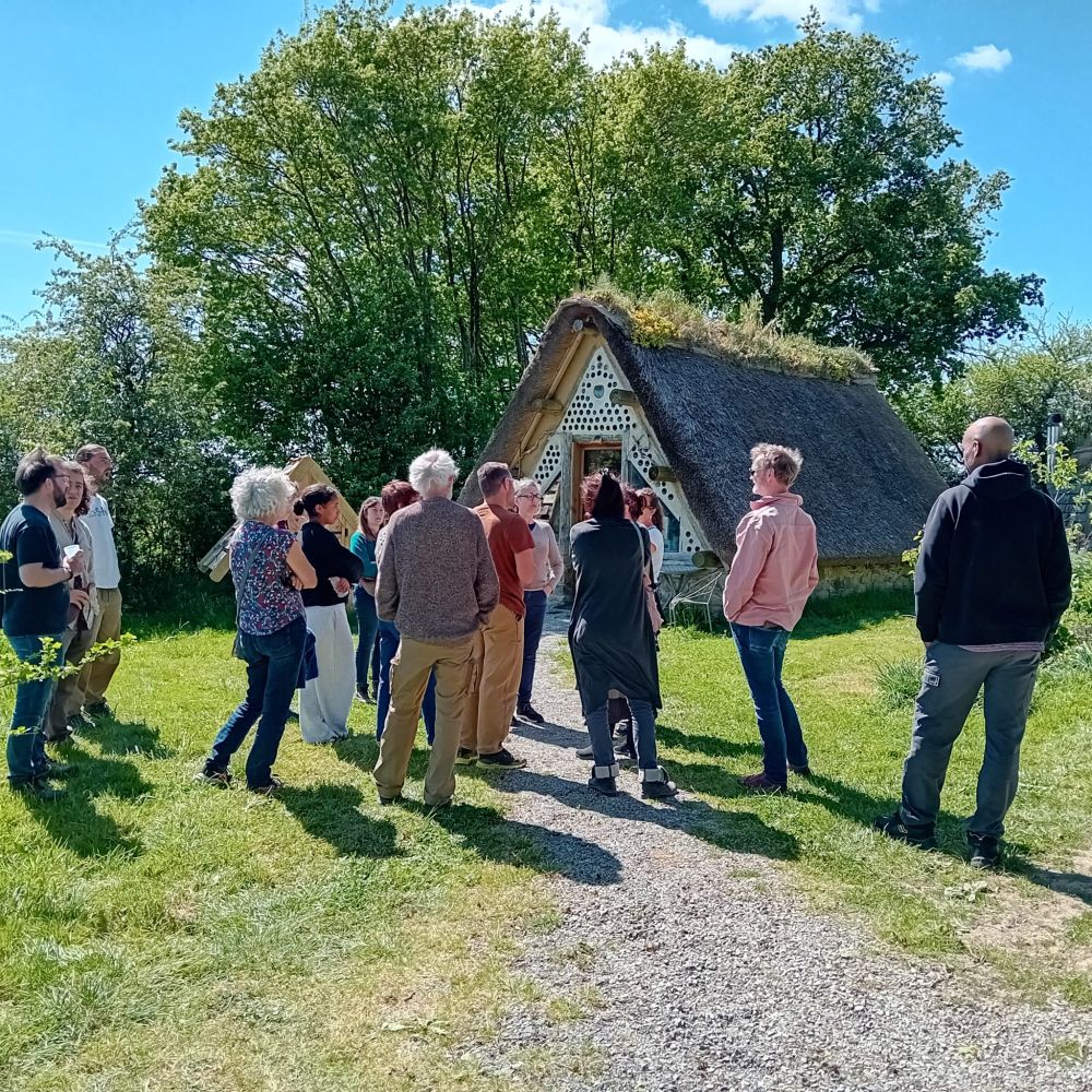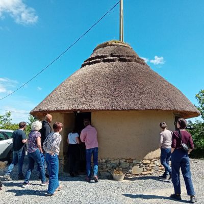 En attendant nous sommes en cour d'une réalisation en bauge, construite avec les méthodes ancestrales : Mur en terre, charpente en perches de châtaignier, toit en chaume.