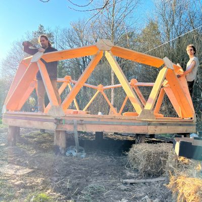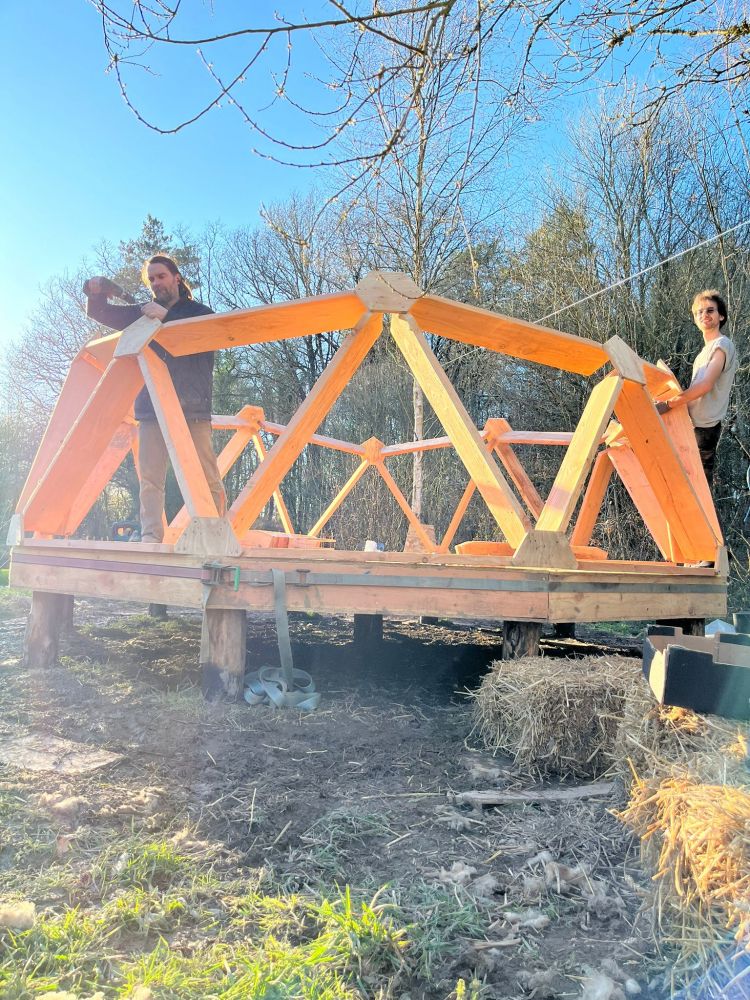 Bonjour, je m'appelle Sylvère, j'ai 23 ans, je suis ingénieur en bâtiment et constructeur de paillourte et dôme géodésique. Je fais régulièrement des travaux sur ma paillourte et je construis un dôme à côté.