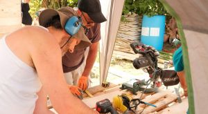 Marie-Aline et Christophe, parents d'Aimelyne et Vivien porteur d'un projet d'habitat participatif locatif avec en vue une semi autonomie alimentaire : permaculture et poulailler.