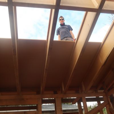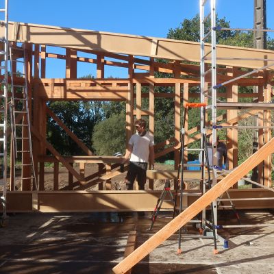 Trentenaires, en couple depuis 15 ans, sensibles à notre impact environnemental depuis aussi longtemps, on a pris conscience que l'on peut chacun à son échelle agir pour le limiter. Dans cette optique, on s'est lancé dans la grande aventure de l'autoconstruction, dans un hameau proche de la Ria d'Etel.