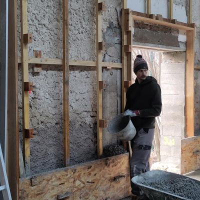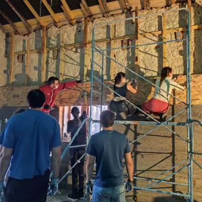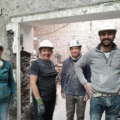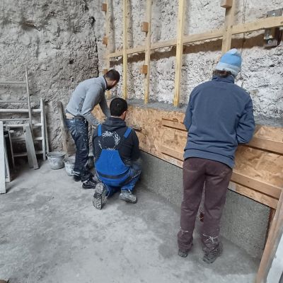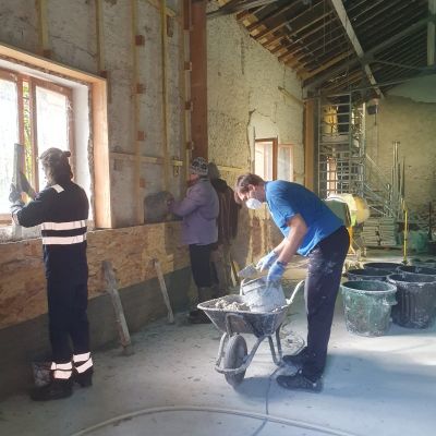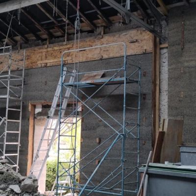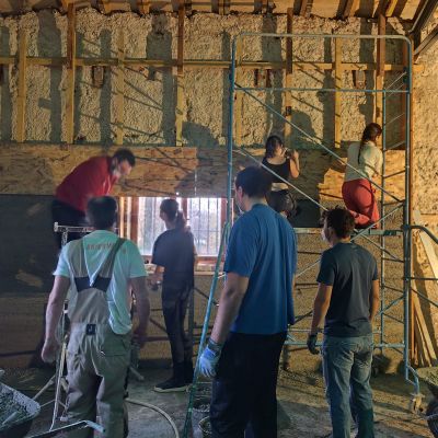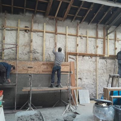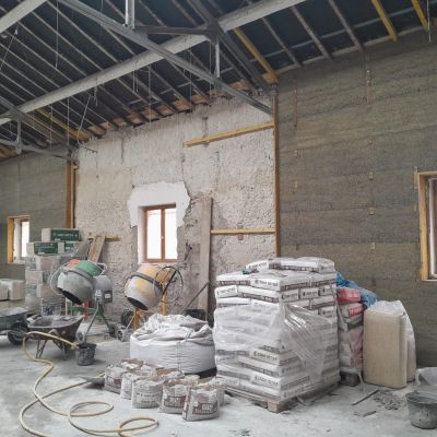 Ce projet collectif consiste à réhabiliter ce bâtiment de manière énergétiquement passive. Nous allons donc avoir plusieurs mois de chantiers "Chaux-chanvre" après la phase application de gobetis et d'isolant sur les pierres à base de pouzzolane. C'est dans ce cadre qu'on propose de la formation et qu'on cherche de l'entre-aide. N'hésitez pas à nous écrire!