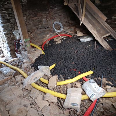 1/ Une grosse auto-rénovation de bâtiments en pierres sèches datant de la fin du XIXᵉ avec des enduits terre/paille et/ou chaux/chanvre, des dalles de chaux pouzzolanique sur hérisson ventilé, des isolations ecolo, et le moins possible de ciment (ne jamais dire jamais... mais bon si on pouvait...).