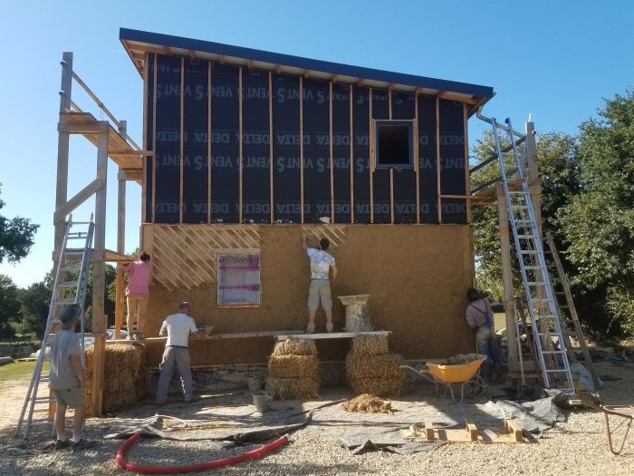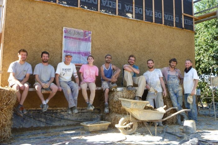 Nous-même, en 2015 avons participé à un chantier de mise en paille et enduits durant deux semaines. Une professionnelle encadrait aussi le chantier. Cela nous a permis de bien comprendre et apprendre ces techniques de construction. Cette expérience conviviale et enrichissante (autant pour la construction que pour les échanges avec les autres) nous a convaincu de refaire la même chose un jour chez nous.