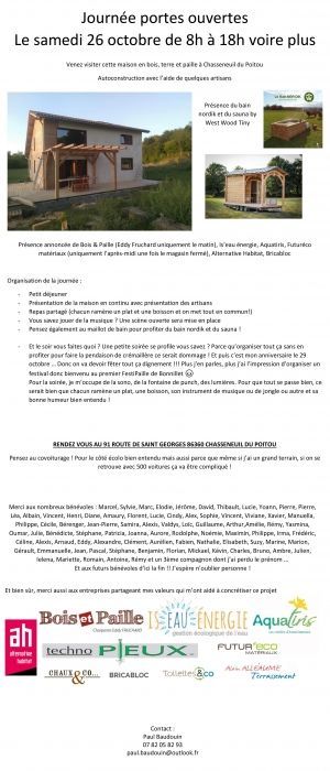 La structure poteau poutre sur dalle bois étant terminée ainsi que la couverture, nous passons au chantier de mise en place de la paille.