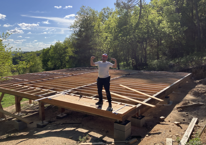 - Entre le 8 avril et le 4 mai : murs ossature bois + plancher de la mezzanine