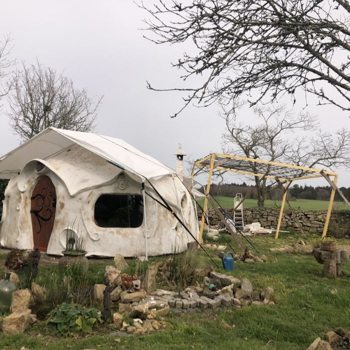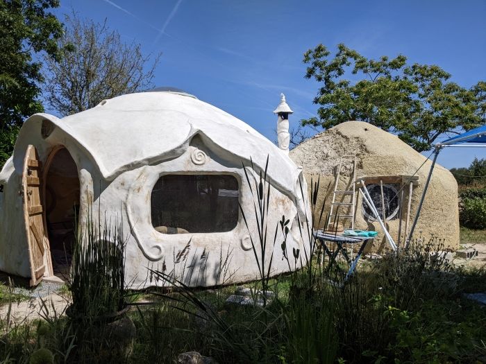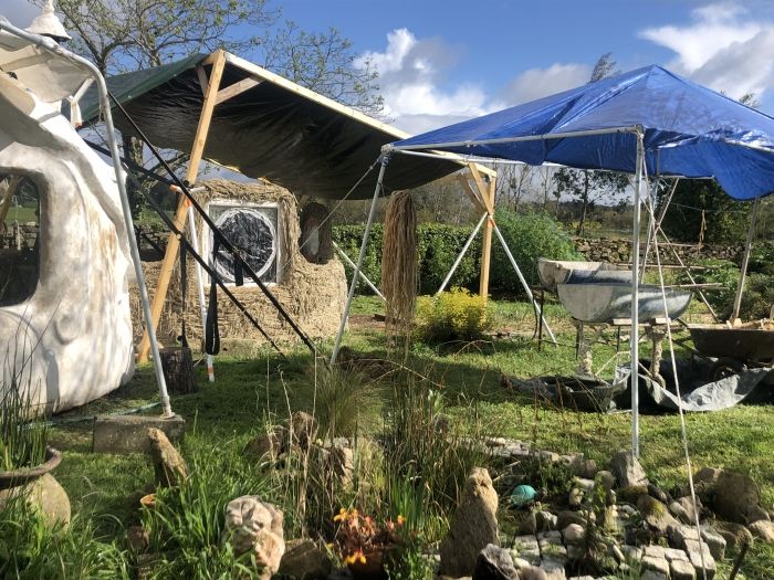 Pour 2022, nous nous lançons dans un projet d’autoconstruction d’une Kerterre (petite maison-sculpture en forme de dômes chaux-chanvre inspirée des créations d’Evelyne Adam).