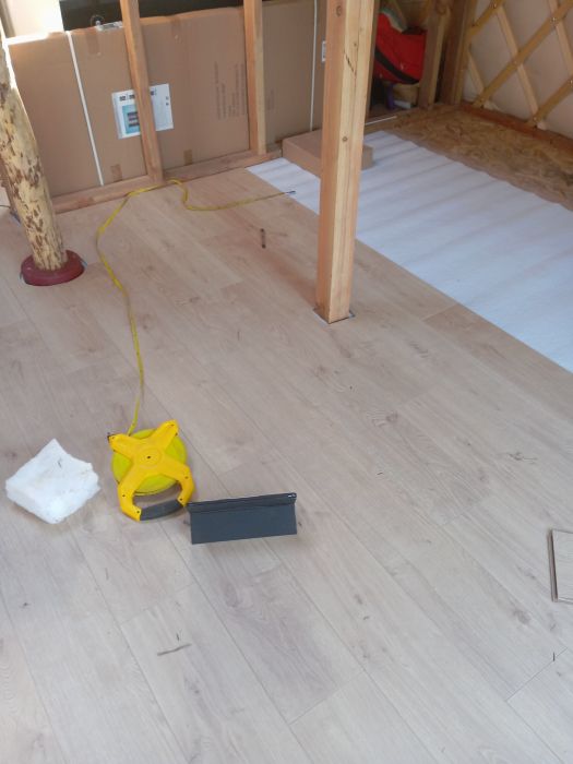 Il s’agit d’une yourte de 40m2 (7m de diamètre) avec une mezzanine intérieure. Il faudra donc assembler le sol, poser les menuiseries, placer le treillis qui servira de mur extérieur, monter la mezzanine, monter le toono (la partie la plus sportive, il sera à 4m de hauteur) et recouvrir le tout d’isolant puis de toile.