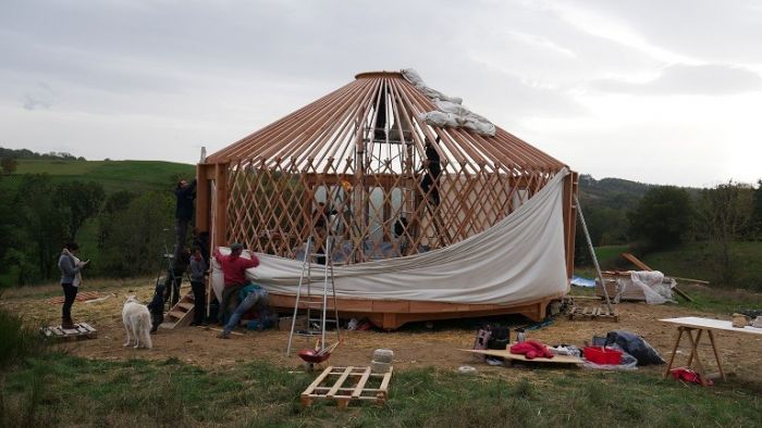Sur cette vidéo on peut voir à quoi ressemble un chantier de montage de yourte (vidéo tournée chez nous pour une précédente yourte) : https://youtu.be/L4LfQO5KVpQ?si=PGrdPetLTDeRZtwZ
