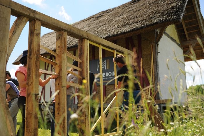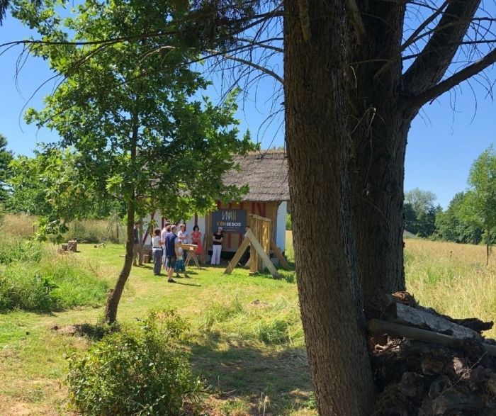 En attendant le printemps, il est toujours possible de partager autour de la charpente à l'ancienne et la couverture en chaume :