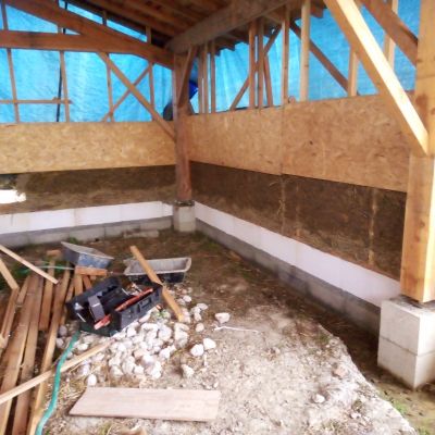 Nous allons apprendre à préparer la barbotine, préparer le mélange, et remplir les murs. Cette technique peut être aussi utilisée en cloison intérieure, mais pour ce chantier là ce ne sera pas le cas. Il se peut que le chantier inclut également les finitions de l’ossature qui accueillera le mélange, donc un peu de menuiserie est à envisager.