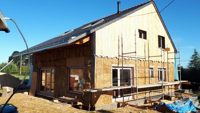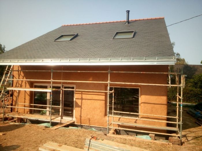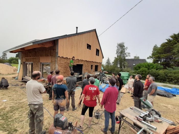 - Chantier sur 3 semaines du 19 Août au 8 Septembre, englobant isolation paille de toute la maison et enduits en terre.
