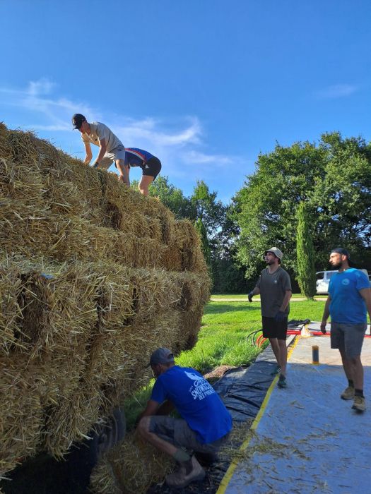 Partie 1 : montage de la maison en paille porteuse et toiture. Nous prévoyons une durée de 3 semaines pour cette étape qui sera réalisée au mois d’août.