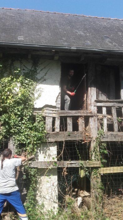 L'idée est de dégager la maison de la végétation qui pousse sur les murs et toiture afin d'y voir clair et de pouvoir faire refaire appel aux artisans pour un chiffrage plus précis.