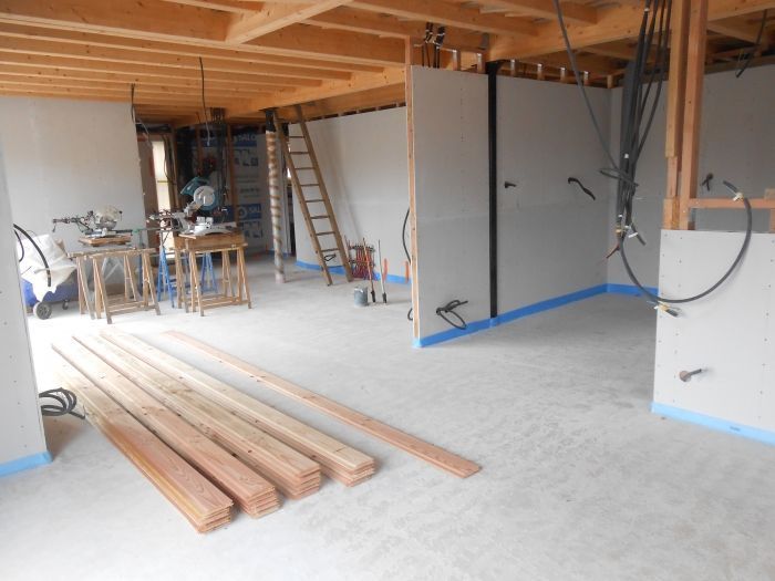 Réalisations du doublage des murs extérieurs, et des cloisons intérieures en ossature bois douglas.