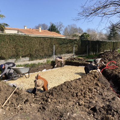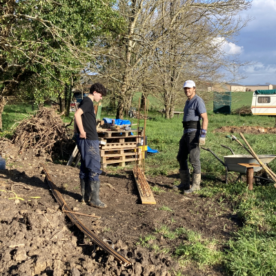 Notre chantier vient de débuter avec la construction du garage (ossature bois et bardage bois) printemps 2026, avant de passer à la maison dans les mois suivants. Nous en sommes aux premières étapes et cherchons à partager cette aventure avec des personnes curieuses d’apprendre et de participer à un projet écologique local!