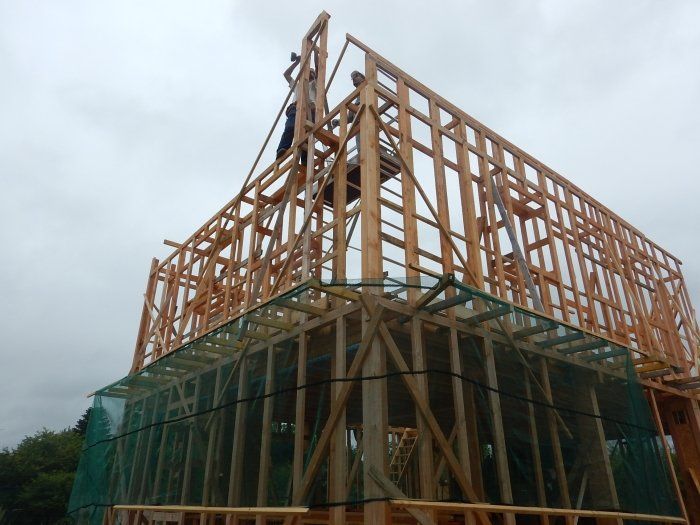 Première étape de l'auto-construction, l'ossature bois selon la technique du GREB.