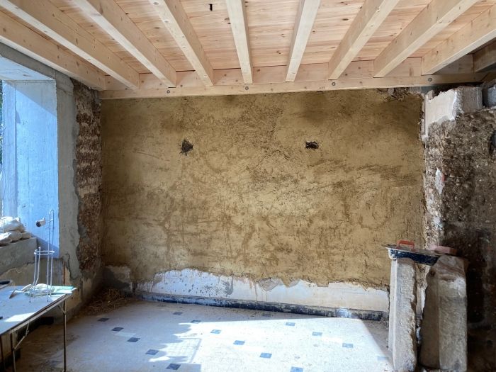 Démolition d’un mur de refend en pisé + ouverture d'une porte fenêtre dans le mur extérieur en pisé
