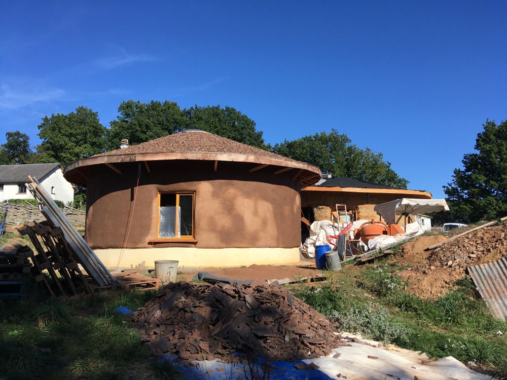 L'apparence d'une yourte, mais seulement l'apparence. "Paillourte." Pas yourte. Une maison en paille porteuse, à bien évidemment différencier d'un HLL type yourte ! ;-)