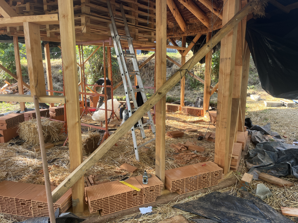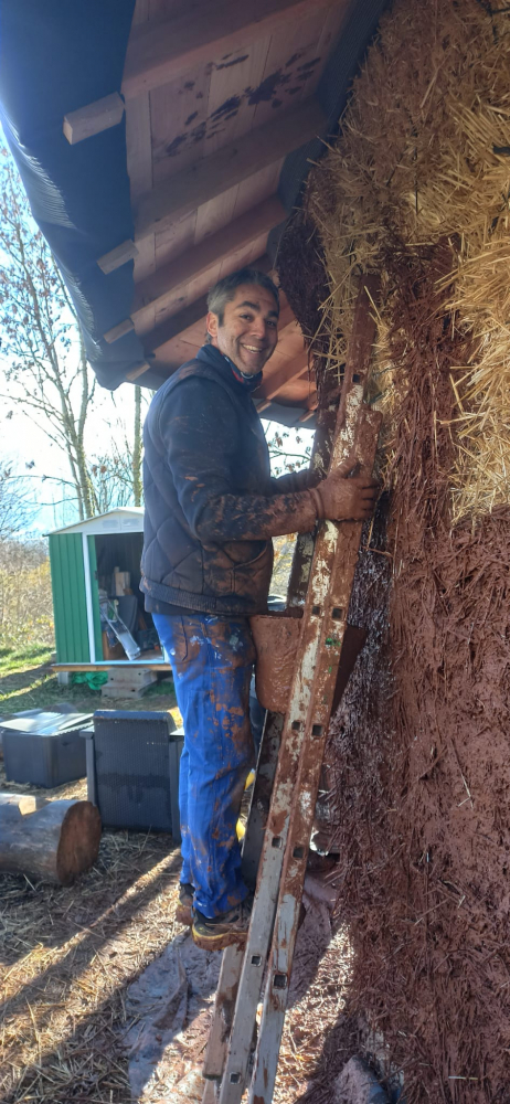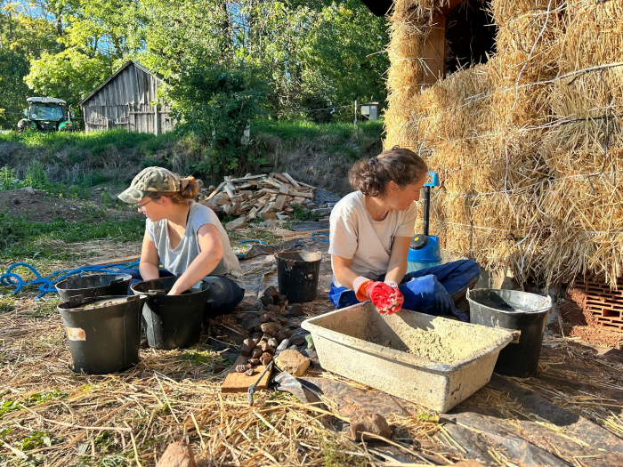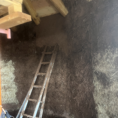 Du 01/05 au 03/05 2026 inclus, ce sera deuxième couche de corps des enduits terre/paille à l’intérieur et si suffisamment de gens et pas trop chaud, couche de finition chaux extérieur