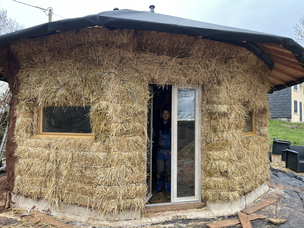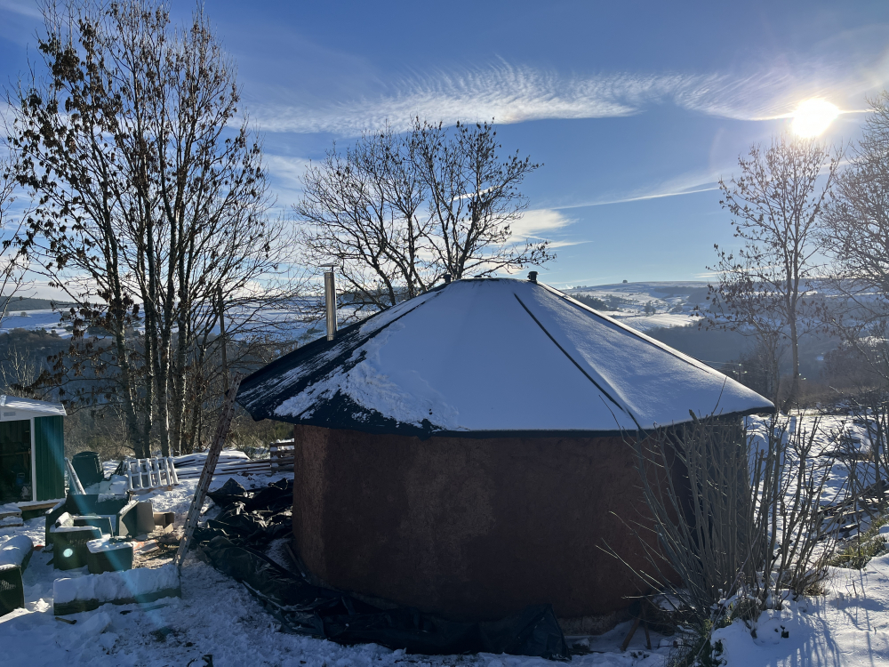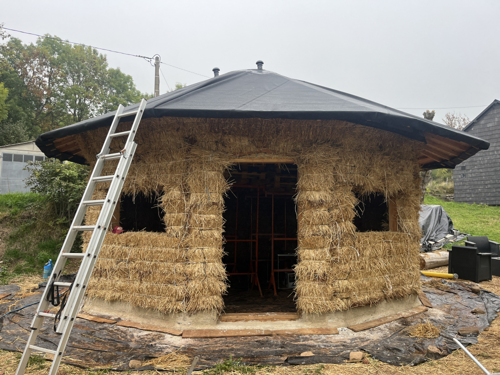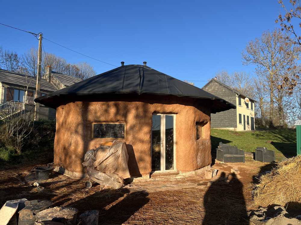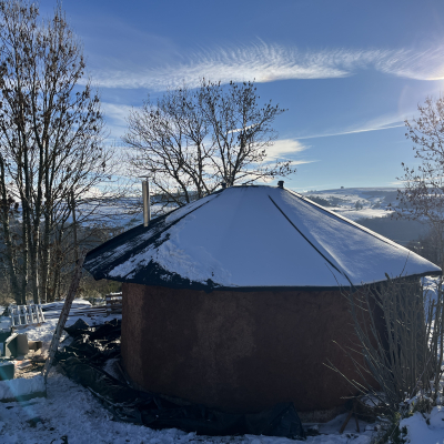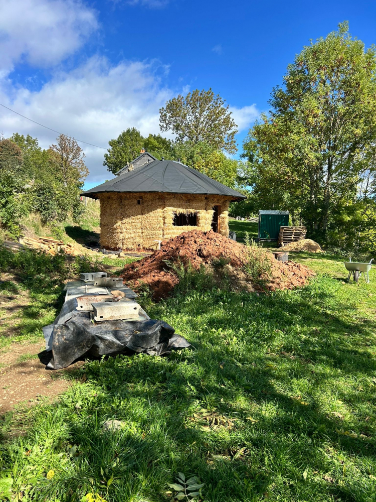 Après avoir acheté le terrain de mes rêves dans un endroit magnifique nommé Cézallier, dans le fin fond du Puy de Dôme, à 1200m d’altitude et y avoir monté une yourte traditionnelle mongole, j’ai eu envie d’un habitat en dur tout en gardant la forme ronde. J’ai cru inventer un super concept mais non, plein de gens y avaient pensé avant moi, et il s’appelle la Paillourte ! Une maison en paille en forme de yourte !