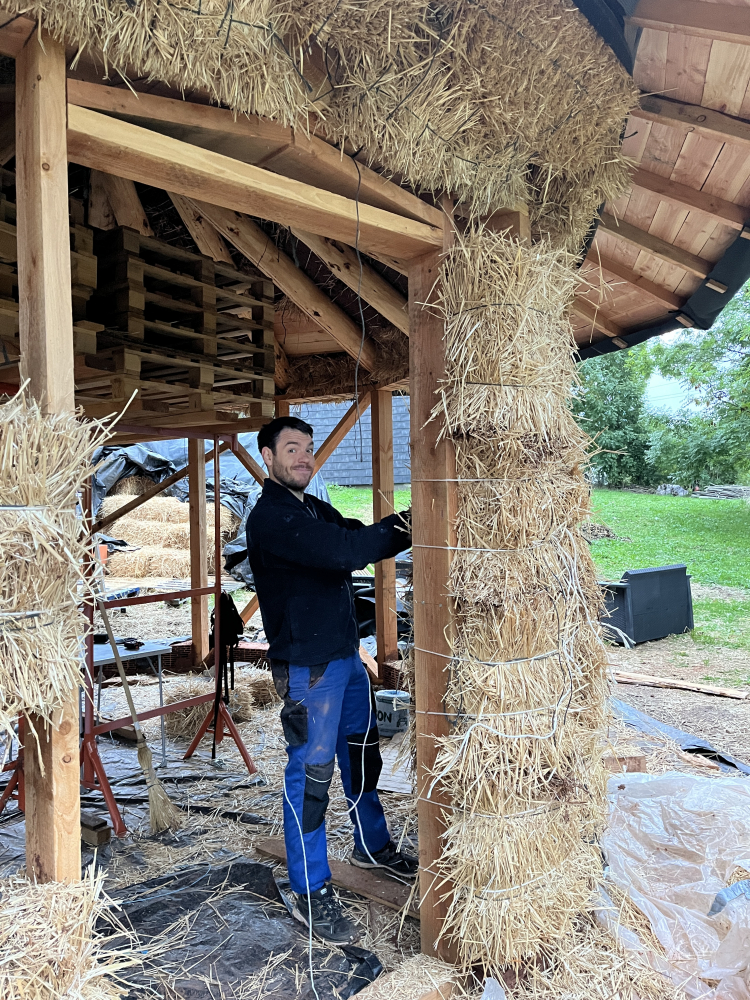J’ai d’abord lu plein de choses, eu mille discussions avec les copains/pros autour de moi et fait une formation avec l’inventeur de la Paillourte en Bretagne. Puis j’ai trouvé un pro spécialisé dans ce type de maisons qui m’a accompagnée, conseillée, formée, aidée... J’ai arrêté de travailler pendant 6 mois et ai auto-construit, avec lui la partie bois et le reste seule ou avec tous mes supers amis, ma paillourte ! Je sais donc dorénavant utiliser une visseuse, mais pas que, tout plein d’outils et j’ai énormément appris, sur toutes les étapes, du terrassement à la charpente, en passant par l’isolation en paille, la pose d’un poêle à bois, de menuiseries et les enduits terre/paille et terre/chaux !